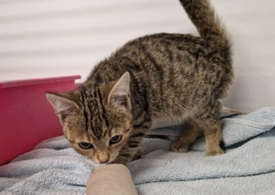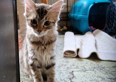 Kitten werden ab der 12. Woche gemeinsam oder zu einem gleichaltrigen, bereits im Haushalt lebenden Kitten, vermittelt.