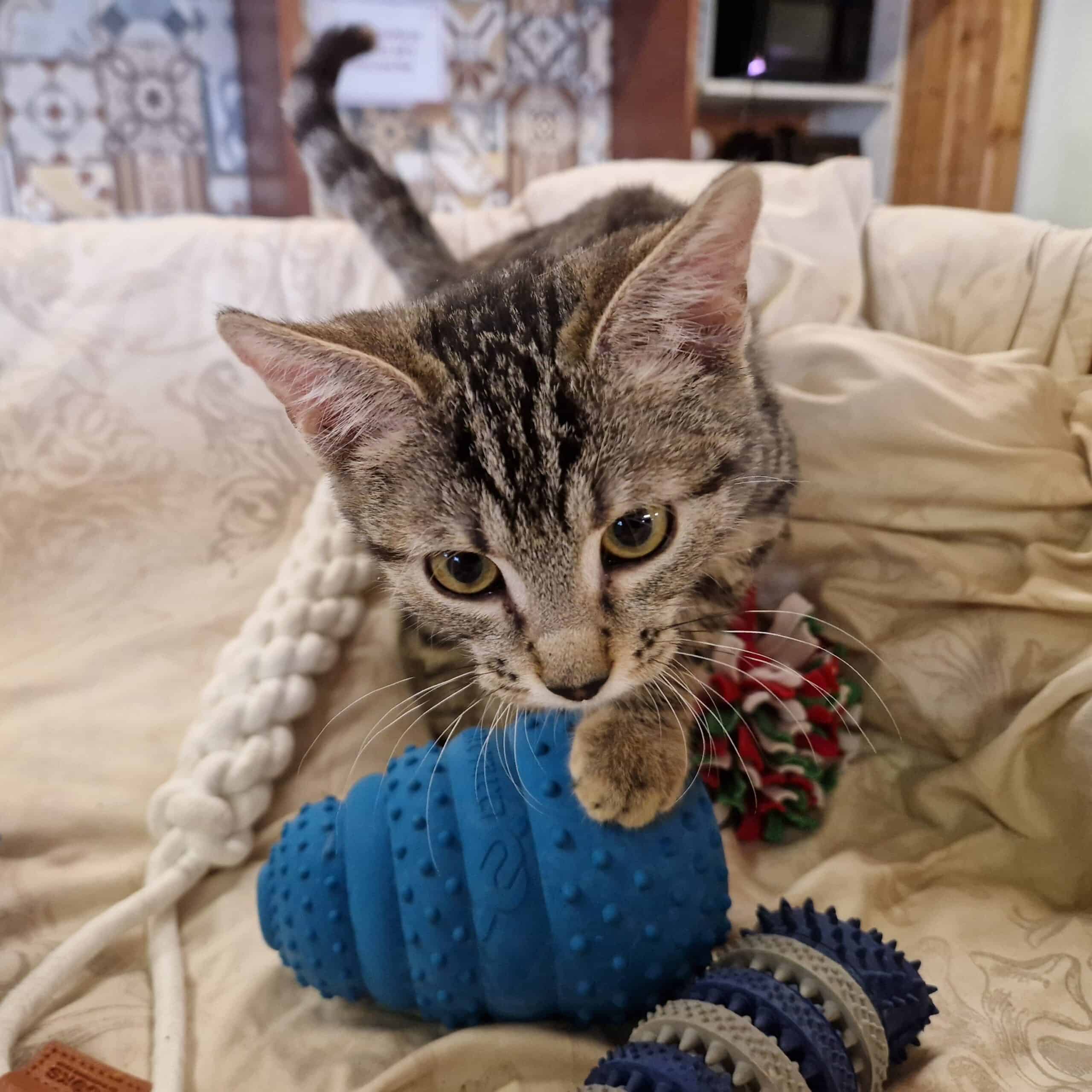 Barbe ist eine noch sehr junge, zierliche und neugierige Katze. Sie ist ein kleines Energiebündel, äußerst menschenbezogen und sehr verspielt. Im Tierheim hat sie mit Wilma Freundschaft geschlossen und das Herz der eher ruhigen Wilma im Sturm erobert. Daher freut es uns sehr, dass Barbe gemeinsam mit ihrer Freundin ein gemeinsamen Zuhause gefunden hat.